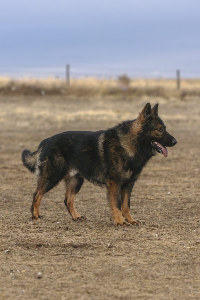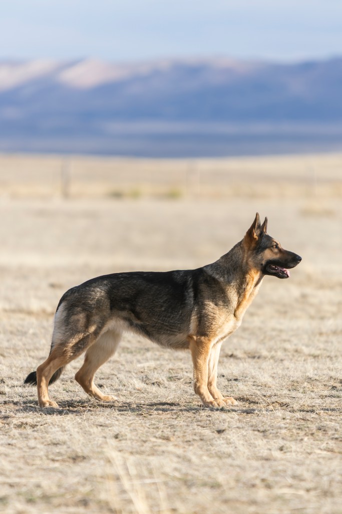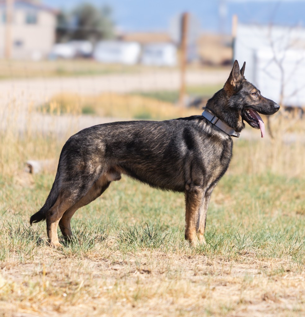 We consider Denali an excellent representation of what we strive for in a working German Shepherd. She is intelligent, stable, capable, and versatile. Her nerve, resilience, and personality make her a well-balanced dog who reflects the best qualities of the breed. She received a grade of Excellent on her OFA hips, 0.32 on her PennHIP, OFA Normal elbows, and is Embark clear for all breed-relevant genetic diseases. She is a carrier for gene associated with Copper Toxicosis in other breeds. However, this gene has not been shown to affect German Shepherds and there is no known risk to her or her offspring of developing the disease.