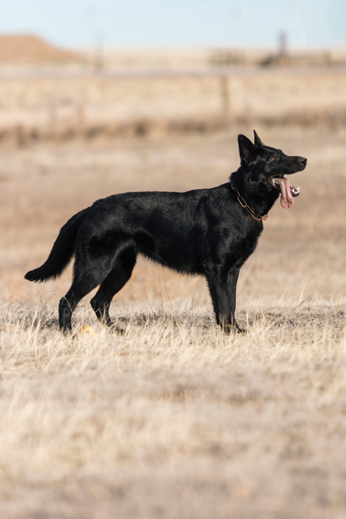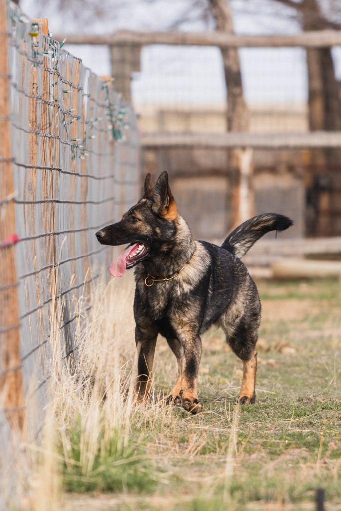 Ember is a 70lb female from mainly Czech lines. She’s highly energetic with high prey and play drives. She’s very neutral with other people and dogs and does well in any public setting. She has a high aptitude for herding (the German Shepherd tending style) and a fantastic work ethic. She’s our go-to farm dog when we know we need a dog that will listen in high distraction and without hesitation. She has a lively personality and her antics, though at times a bit naughty, can’t help but make us laugh. She is amazing with children and was absolutely smitten with our son from the day he was born.